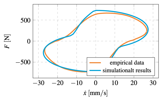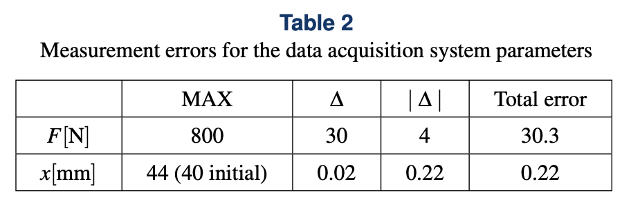 where: x_i – damper linear deformation for i step, N – number of probes, F_emp(x) – force value obtained during experiment, F_B-W (x) – computational force value.