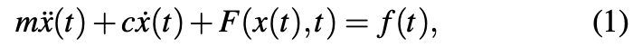 where: t – time, x(t) – displacement, m – oscillating mass, c – damping coefficient, F(x(t),t) – nonlinear elastic force, f(t) – resultant external force.