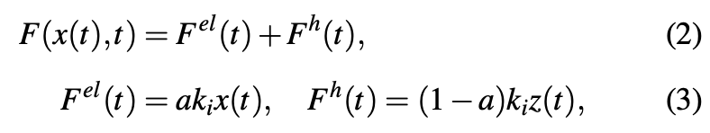 According to Bouc-Wen model, a decomposition of the restoring force F(t) can be done. Two parts components are distinguished, an elastic F_el(t) and a hysteretic F_h(t) force described as per the following formulas: