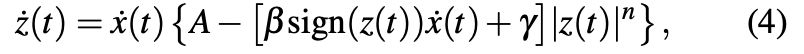 The hysteretic displacement z(t) is compliant with the following non-linear differential equation having a zero initial condition (z(0) = 0):