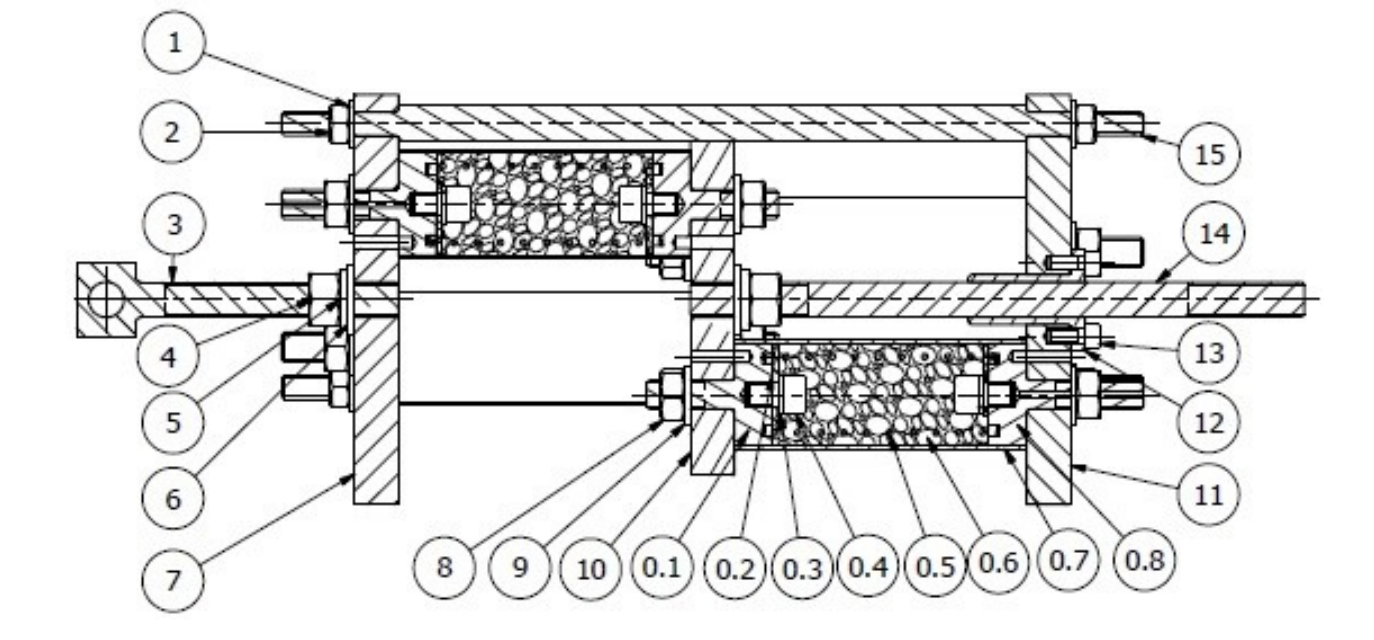– fixing nut; 0.1–0.8 – elements of the inner VPP cylinder)