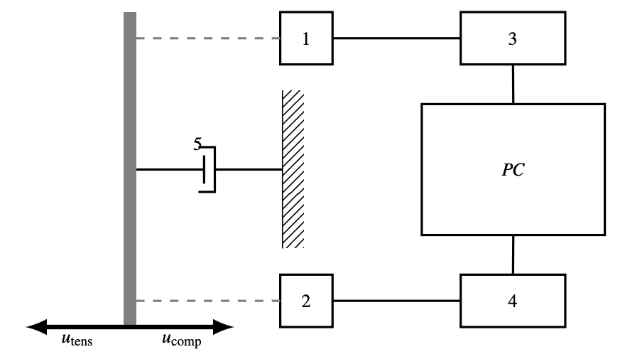 Fig. 3. Scheme of the measuring system used. 1 – displacement